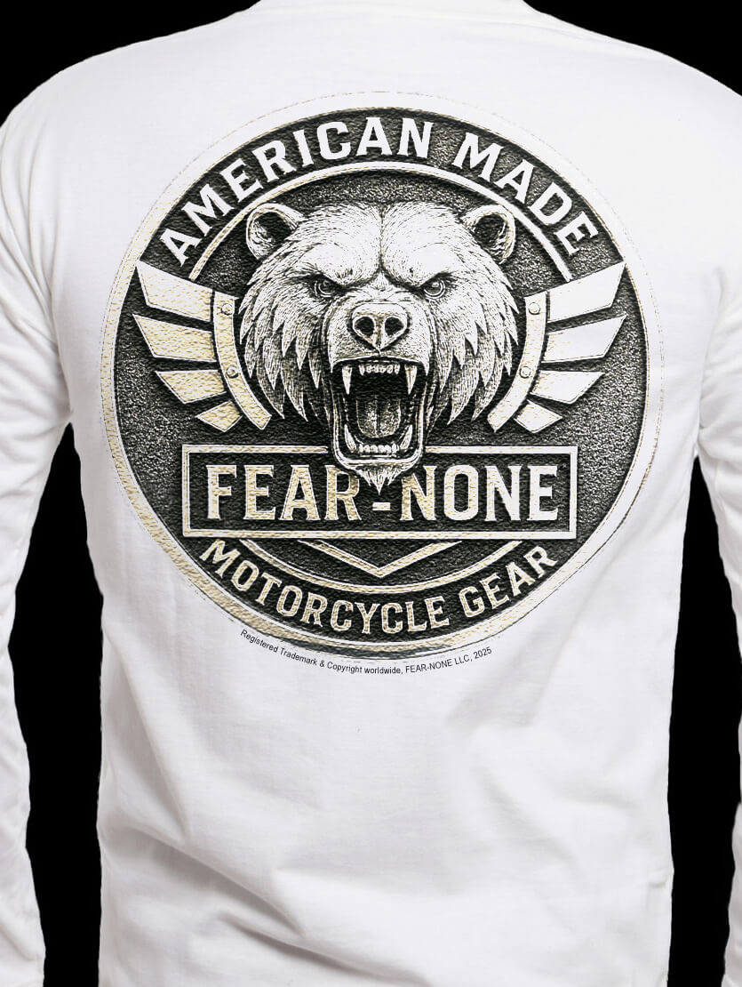 FEAR-NONE Gear's American OUTLAW Grizzly Coin Shirt is as unique as it gets! This a "one-of-a-kind" short-sleeve designed to take anything the road can dish out and stand out in a crowd. Cool, breathable and ready to perform whether it be a highway ride, city cruisin or a brew with the boys.